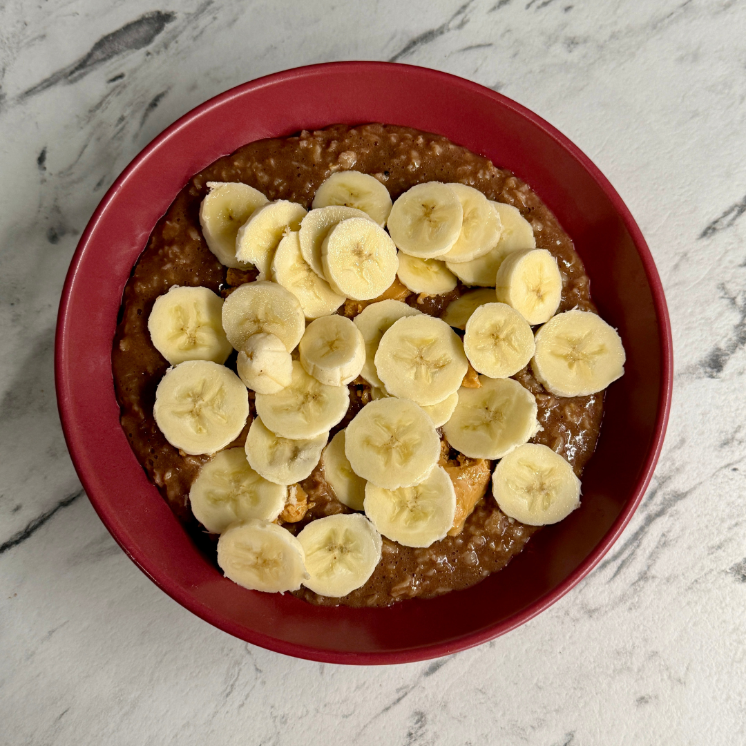 Šokolaadi-proteiinipuder banaaniga ja pähklikreemiaga