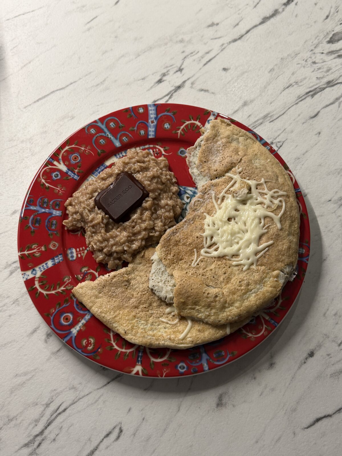 Kaneeline kaerapuder tumeda šokolaadiga ja omlett