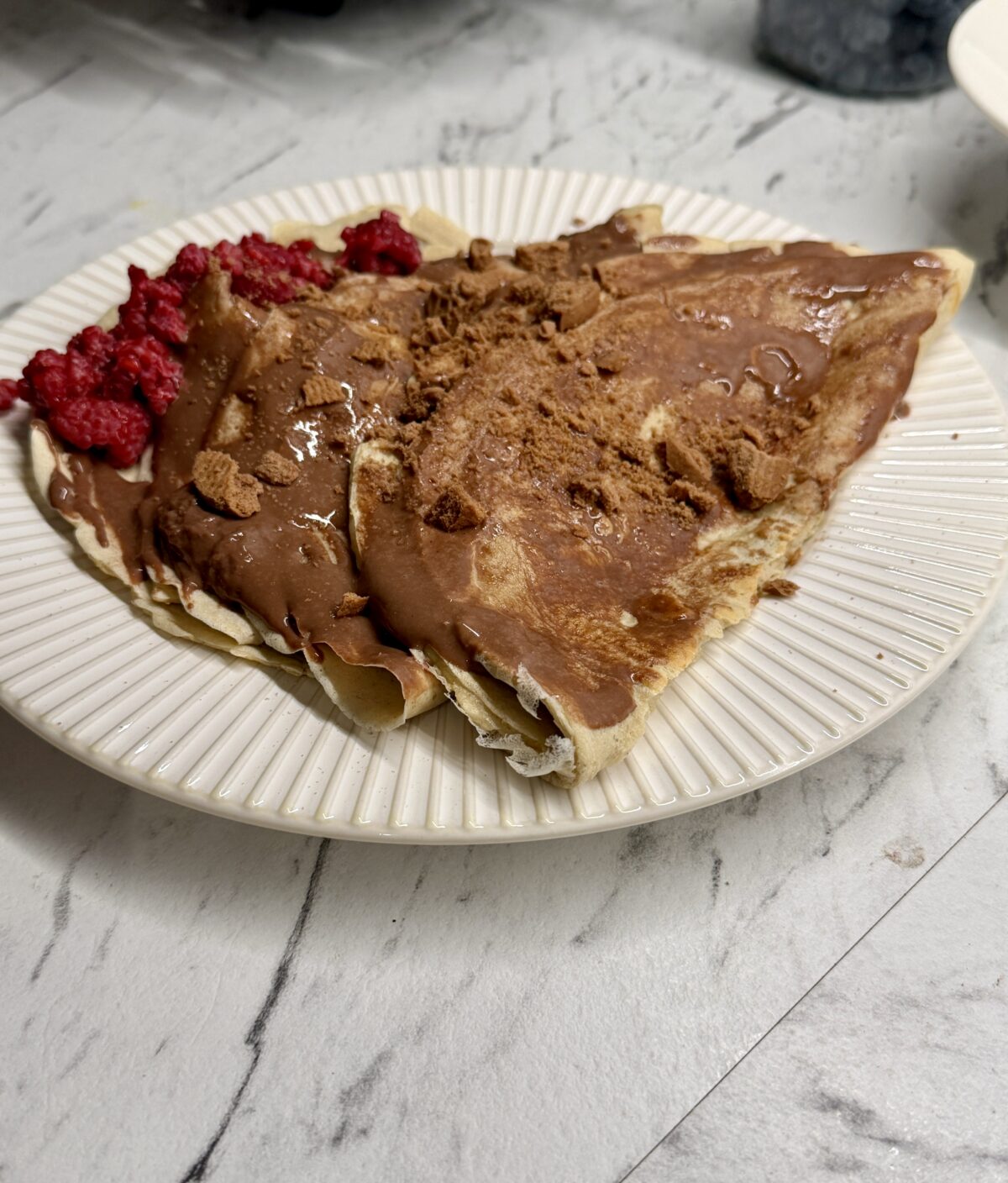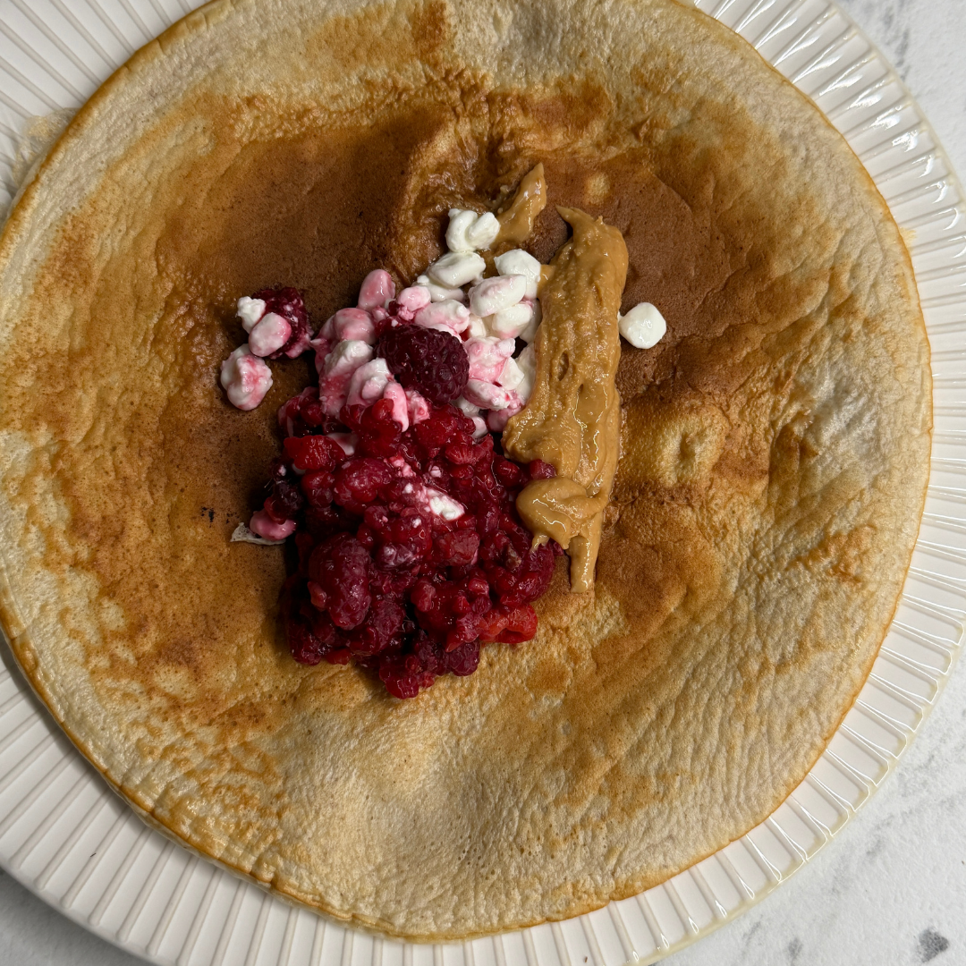 Pannkook kodujuustuga, marjadega ja pähklikreemiga