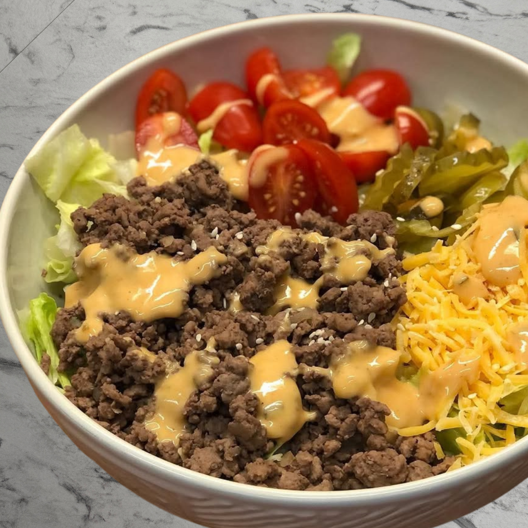 Burger bowl (hakkliha ja cheddari juustuga)