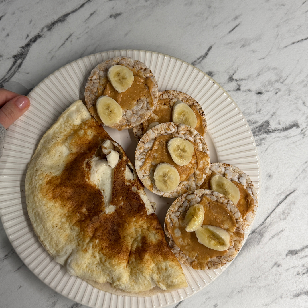 Munavalgeomlett pähklikreemiga ja banaaniga kaetud galettidega