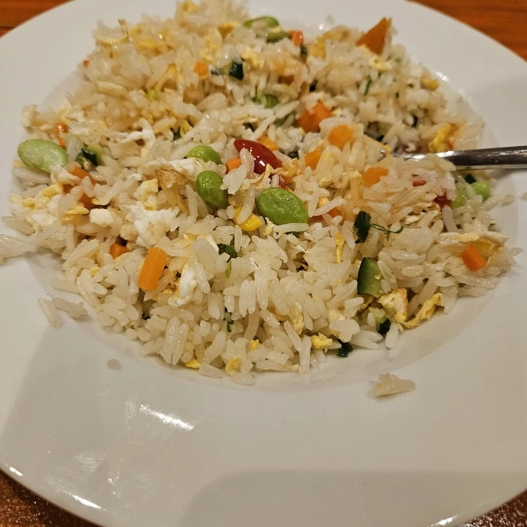 Praetud riis muna ja köögiviljadega