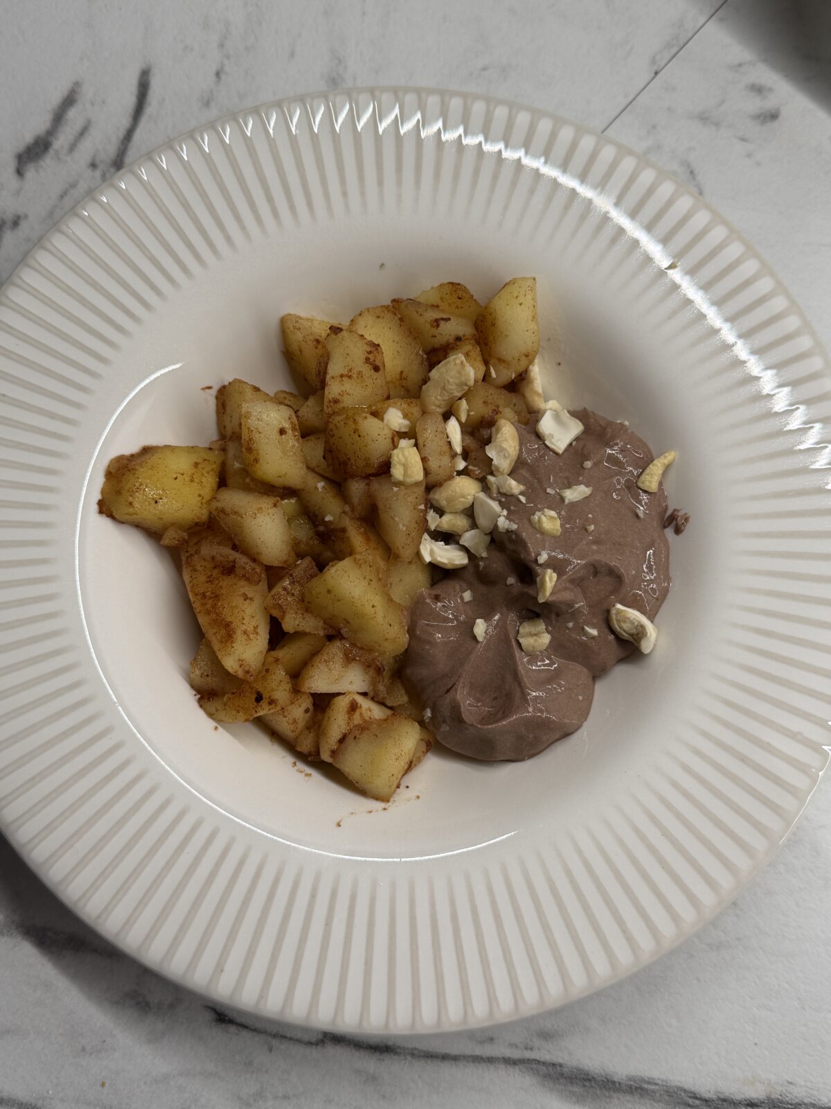Pannkoogid karamelliseeritud õuna-banaani ja vaniljepudinguga (proteiinipulbrita)