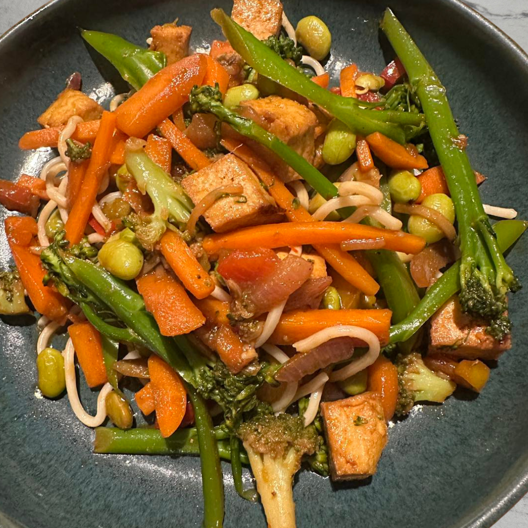 Vegan suvikõrvitsa-nuudli salat tofuga